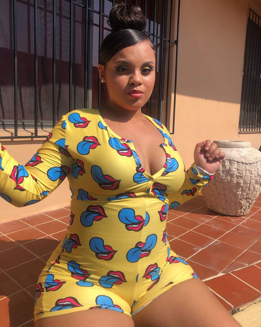 Explosive Element Printing Sexy European And American Plus Size Homewear One-piece Pajamas