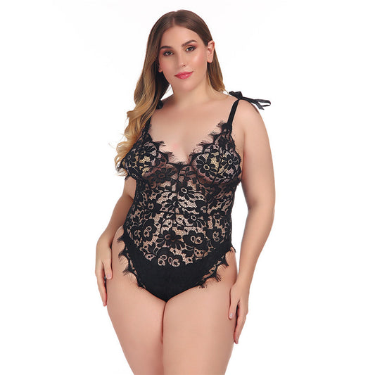Plump Lingerie Sexy Fat Lady Lace Nightgown Sheer Cutout Home Pajamas